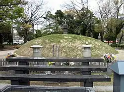 Le tertre funéraire de la Bombe-A est situé près de ce qui fut, à l'origine, le temple Jisen-ji. Après l'explosion, des milliers de corps non identifiés, certains étant charriés par les rivières aux alentours, furent entassés ici, puis brûlés. En , une petite chapelle put être installée grâce à des dons. Le , la ville de Hiroshima offrit à ces victimes de la bombe une sépulture plus décente que celle faite dix ans plus tôt dans l'urgence. Il fut alors décidé de rassembler les ossements dispersés aux quatre coins de la ville.