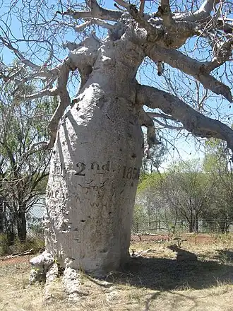 L'« arbre de Gregory », un baobab marqué en 1856 par Augustus Charles Gregory (aujourd'hui près de Victoria Highway).