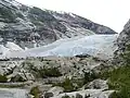 Le plus haut sommet du parc est le mont Lodalskåpa avec 2 083 mètres. Le point culminant du glacier, Brenibba, se trouve à 2 018 mètres au-dessus du niveau de la mer tandis que son point le plus bas est à 350 mètres. Le glacier a rétréci ces dernières années, et on a retrouvé des ruines de fermes qui avaient été dépassées par le glacier en 1750[1].