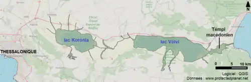Le parc national des zones humides des lacs Korónia, Vólvi et du Témpi macédonien (en grec moderne : Εθνικό Πάρκο υγροτόπων λιμνών Κορώνειας, Βόλβης και Μακεδονικών Τεμπών) est un parc national de Grèce créé en 2004[1]. Il est situé au nord de la Chalcidique et à l’est de l’agglomération de Thessalonique.