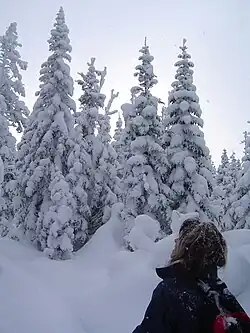 En hiver, les fortes accumulations de neige ou de givre forment de véritables sculptures naturelles appelées « fantômes » ou « momies » d'après leur apparence. Les fantômes se forment lorsque la poudrerie de neige molle finit par camoufler totalement les conifères. Ils se trouvent entre 800 m et les cimes dégagées, à l'abri des vents, dans les vallées descendant vers le nord[5]. Les momies se forment lorsque de minuscules gouttelettes des nuages recouvrent les arbres rabougris de givre. Elles occupent les hauteurs exposées au vent, à plus de 900 m.