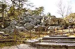 Le sous-sol est composé de sable et de grès, ce dernier formant par endroit des chaos rocheux[3].