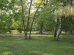 Les arbres de Kansanpuisto sont principalement de vieux arbres tels que de très grands chênes anciens des pins et des ormes[1].