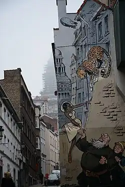 - ↑ « Une fresque murale en BD pour la Fleur en Papier Doré », RTBF, (lire en ligne, consulté le ).