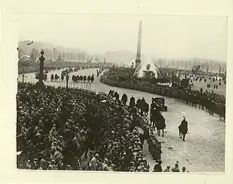 Des foules tout aussi enthousiastes remplissent les Champs Élysées le pour célébrer le retour de l'Alsace et de la Lorraine à la France. Des foules immenses accueillent également le président Woodrow Wilson à l'Hôtel de Ville le , alors qu'il vient pour participer aux négociations de paix à Versailles.