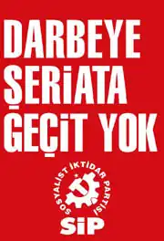 Affiche du parti communiste de Turquie, où il est écrit « Pas de coup d'État, pas de sérialisation ».