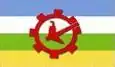- le drapeau du parti consiste en un fond de quatre bandes horizontales bleu, blanc, vert et jaune (du haut vers le bas), sur lequel apparaissent, en surimpression au centre, deux symboles de couleur rouge : une roue dentée censée représenter aussi bien une roue industrielle qu'un chakra et, au milieu, une charrue ;