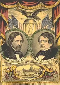 En 1860, le candidat du Parti républicain est Abraham Lincoln de l’Illinois. Le contexte de l'élection présidentielle est alors très différent de celui de 1856. L’unité démocrate a implosé et le parti présente deux candidats. L’un est un sudiste ségrégationniste, John Cabell Breckinridge, et l’autre un nordiste modéré, Stephen A. Douglas. C’est la chance du candidat républicain. Au soir des élections, Abraham Lincoln est en tête des candidats et par conséquent est élu président avec 39 % des voix alors que les démocrates divisés totalisaient ensemble 48 % des suffrages.