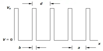 Le modèle de Kronig-Penney, développé par Ralph Kronig et William Penney en 1931, est un modèle simple, idéalisé d'un système de mécanique quantique constitué d'une infinité de puits de quantiques, tous de la même taille a, séparés par des barrières de potentiel rectangulaires de largeur b et de hauteur V0, chaque « cellule » (puits + une barrière) ayant une longueur d (d=a+b).
