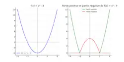En mathématiques, à toute fonction réelle f, on peut associer deux fonctions positives, sa partie positive f+ et sa partie négative f−, définies respectivement par :