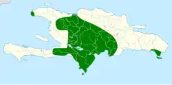 La Paruline aux yeux rouges se trouve en République dominicaine et en Haïti.