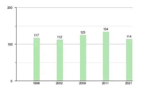 En 2021, le village de Paryż comptait 114 habitants, en diminution de −2,56 % par rapport à 1998[6]. En 2021, 57 % des habitants du village de Paryż étaient en âge de travailler (entre 18 et 64 ans pour les hommes et 18 et 59 ans pour les femmes). 19,3 % des habitants avaient moins de 18 ans et 23,7 % avaient l'âge légal de la retraite. Les personnes en âge de travailler représentaient 59,5 % de la population de la voïvodie de Couïavie-Poméranie et 59,5 % de la population de Pologne. Ainsi, le taux de dépendance démographique du village de Paryż est supérieur à celui de la voïvodie de Couïavie-Poméranie et supérieur à celui de la Pologne[7].