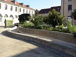 | Bassin-fontaine de la mairie | Esplanade des Droits de l'Homme, près de la Mairie | Ce bassin-fontaine a été créé en 1992, lors du réaménagement de la cour arrière de la Mairie de Besançon. Elle est alimentée grâce à une nappe d'eau originaire de l'assèchement permanent du parking de la Mairie, situé en souterrain. |