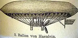 Paul Haenlein construisit le premier dirigeable propulsé par un moteur à combustion interne de Jean-Joseph Étienne Lenoir. Le moteur était alimenté par le gaz contenu dans le ballon ; sa consommation diminuait la portance, ce qui limitait son rayon d'action.