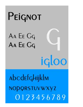 De nos jours, « Peignot » est une marque déposée de Linotype[8],[9]. Elle est distribuée, individuellement ou par lot avec d'autres polices, par Adobe[10] et Linotype[11].