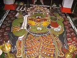 Au Kerala, les kalam, kalam ezhuthu ou kalampattu (malayalam : കളമെഴുത്തുപാട്ട് ; translittération ISO 15919 : kaḷameḻuttupāṭṭ) sont l’apanage de certaines communautés d’hommes : des peintres rituels dont la tâche héréditaire consiste à élaborer des frises anthropomorphes dans les temples et les maisons.