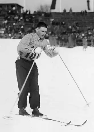Pekka Niemi pendant le 50 km lors des Championnats du monde de ski nordique 1937 à Chamonix