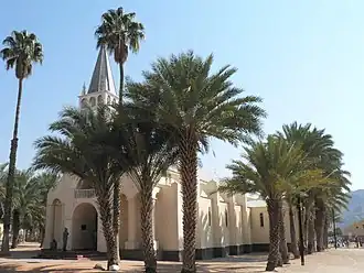 La cathédrale est entourée des palmiers dattiers aux fruits savoureux qui sont laissés, comme le terrain pendant plusieurs années consécutives. L'établissement actuel se compose essentiellement de descendants de la mission installés au XIXe siècle. Ils sont en grande partie sans emploi.