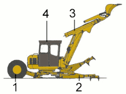 3 : flèche avec balancier télescopique et rétrocaveuse ;