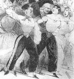 - ↑ Détail d'une lithographie de Gustave Doré montrant le bal de l'Opéra.