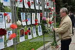 Début juin 2015, les procureurs de la région de Donetsk signalent 1 592 civils disparus dans les zones contrôlées par le gouvernement, dont 208 avaient été localisés[29]. Dans le même temps, un rapport des Nations unies indique qu'entre 1 331 et 1 460 personnes sont portées disparues, dont au moins 378 soldats et 216 civils. 345 corps non identifiés, pour la plupart des soldats, sont détenus dans des morgues de l'oblast de Dnipropetrovsk ou enterrés[30]. Au total, fin octobre, 774 personnes sont portées disparues selon le gouvernement[31], dont 271 militaires[32]. Fin décembre 2017, le nombre de disparus confirmés du côté ukrainien est de 402[33], dont 123 soldats[34]. Les séparatistes signalent également 433 disparus de leur côté à la mi-décembre 2016[35], et 321 disparus à la mi-février 2022[36].