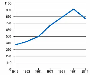 - 1 2 (sq) « Évolution de la population 1948-2011 », sur pop-stat.mashke.org (consulté le ).