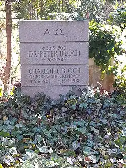 Peter Bloch décède peu après avoir célébré les noces de diamant (60 années). Sa dernière demeure ainsi que la tombe du fils Horst Peter – est situé au cimetière forestier de Zehlendorf.