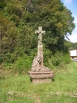 • L'église paroissiale, dédiée à l'Exaltation de la Sainte-Croix reconstruite de 1829 (date portée) à 1831, aux frais du curé Jeko[47]. Les paroissiens s'étaient engagés à lui payer en 6 termes la somme de 12 000 francs et à lui céder l'ancienne église, aux termes d'un traité passé entre eux le . A remplacé une ancienne église très petite et malsaine.