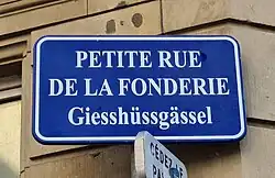Des plaques de rues bilingues, à la fois en français et en alsacien, ont été mises en place par la municipalité à partir de 1995[2]. C'est le cas du Giesshüssgässel.