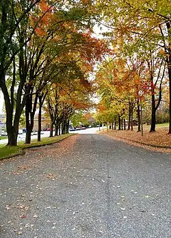 Cliché de la montée du stationnement de la chapelle du couvent des Sœurs de la Sainte-Famille.