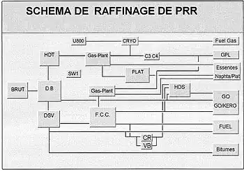 PRR, comme toutes les raffineries de pétrole, produit, à partir du pétrole brut et à travers nombre de traitements différents, une large gamme de produits dérivés, des plus lourds, comme le bitume, aux plus légers, comme le GPL, en passant par les fiouls et les carburants, ces derniers constituant la principale activité du site.