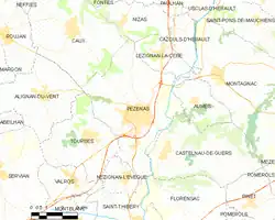 Les communes limitrophes sont Alignan-du-Vent, Aumes, Castelnau-de-Guers, Caux, Florensac, Lézignan-la-Cèbe, Montagnac, Nizas, Nézignan-l'Évêque, Saint-Thibéry et Tourbes.