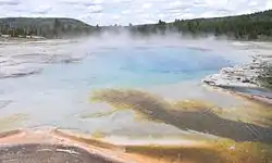 On appelle source chaude toute source géothermique chaude. généralement, les sources chaudes sont provoquées par l'activité volcanique. La nappe phréatique est chauffée par la chambre magmatique, ce qui crée des sources d'eau chaude surchauffée, qui peuvent aller de 30 °C à plus de 100 °C.