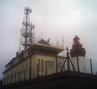 C'est une tour tronconique blanche en béton armé au sommet de briques rouges, avec galerie et lanterne. Il se situe sur le terrain militaire du sémaphore.