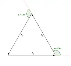 Le concept de vecteur fournit un outil efficace pour répondre à ce genre de question : "Quelle différence de phase est-elle nécessaire entre trois ondes identiques pour qu'elle s'annulent parfaitement ? Dans ce cas, il suffit d'imaginer trois vecteurs de normes identiques et de les placer bout à bout de manière que l'extrémité du dernier rejoigne l'origine du premier. Il est évident que la forme qui satisfait cette condition est un triangle équilatéral et que l'angle entre chaque phaseur et le suivant est de 120° (2π/3 radians), ou un tiers de la longueur d'onde La différence de phase voulue entre chaque onde est donc de 120°.