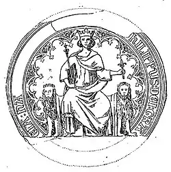 Par la suite, Philippe concentre essentiellement sa politique extérieure vers ses voisins ibériques[40]. Un traité de paix est signé à Salamanque le avec la Castille[41]. Il entame par ailleurs des négociations autour des fiançailles de sa fille aînée Jeanne avec Pierre, héritier du trône d'Aragon, dès 1329[42]. Pierre IV épouse finalement Marie, sœur cadette de Jeanne, qu'il préfère. Pour permettre ce mariage, Jeanne se fait religieuse à l'abbaye de Longchamp en 1337 à l'âge d'onze ans et renonce l'année suivante à ses droits sur le royaume de Navarre au profit de sa sœur. Elle reçoit en dédommagement une rente de 1000 livres, assise sur la seigneurie de Mantes[43].