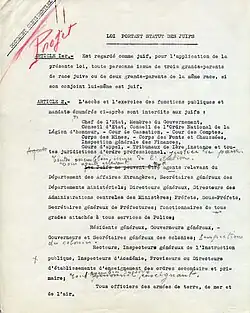 - Lois sur le statut des Juifs du régime de Vichy