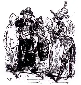 - ↑ Une femme ou jeune fille habillé en débardeur, personnage typique du Carnaval de Paris.