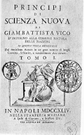 Giambattista Vico fait partie des premiers philosophes du siècle à rédiger une théorie systématique de l'Histoire. Il publie en 1725 (puis, remanié, en 1744) les Principes d'une science nouvelle relative à la nature commune des nations, où il entend non seulement retracer des événements historiques mais fonder une science, la scienza nuova, dans le but d'en tirer un enseignement. Il y expose une théorie cyclique de l’histoire, les trois âges, selon laquelle les sociétés humaines progressent à travers différentes phases[52].