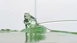 Versement vertical d'un shampooing qui crée un jet latéral par effet Kaye.