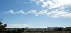 Instabilité de Kelvin-Helmholtz matérialisée par des nuages.