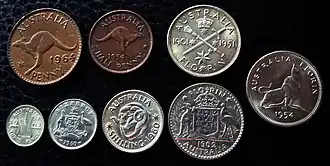Cependant, avec l'adoption d'un gouvernement fédéral en Australie, les pièces britanniques ont continué à être utilisées jusqu'en 1910, date à laquelle les premières pièces d'argent australiennes ont été introduites. Ces nouvelles pièces, qui comprenaient des florins, des shillings, des six pence et des trois pence, étaient toutes frappées d'un portrait du roi d'Angleterre Édouard VII. Un an plus tard, les centimes et demi-centimes australiens entrent en circulation. Contrairement à la Nouvelle-Zélande, il n'y a pas de demi-couronne. En 1931, la monnaie souveraine en or cesse d’être frappée en Australie. Les couronnes, soient des pièces de cinq shillings, sont frappées en 1937 et 1938.