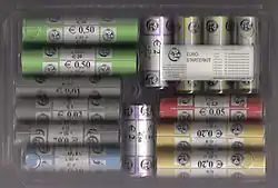Rouleaux de pièces en euro produites par la Monnaie royale de Belgique.