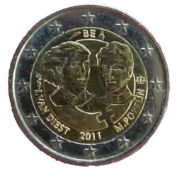 ↑ Mise-à-jour des faces nationales des pièces en euros destinées à la circulation: Royaume de Belgique. In: Journal officiel de l'Union européenne, 2007/C 302/08, 14 décembre 2007.