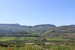 - la plaine de la Drôme, très plate, avec un espace agricole ouvert et les lignes d'arbres qui accompagnent la rivière ;