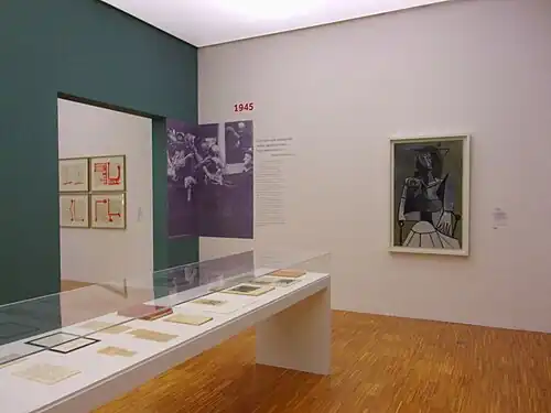 Par la suite, quelques œuvres du grand maitre de l'art moderne ont cependant été accueillies lors d'expositions temporaires du musée ou acquises par ce dernier. C'est le cas pour la conservatrice Gabrielle Kueny qui organise du 1er juillet au une exposition sur les affiches de Pablo Picasso[6]. C'est également le cas pour sa successeure, Hélène Lasalle, lors d'une exposition sur les céramiques de peintres célèbres du au dans laquelle certaines l'ont été par la main de Picasso[7]. En 2012, le musée de Grenoble acquiert l'un des treize collages cubistes épinglés de Pablo Picasso daté du printemps 1914 pour un montant de 750 000 euros[8]. Ce tableau intitulé Le verre est exposé tous les trois ans.