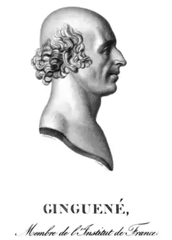 Pierre-Louis Ginguené (prononcé [ʒɛ̃ɡ.ne]), né le à Rennes et mort le à Paris, est un journaliste, poète et historien de la littérature français.