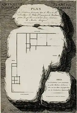 - ↑ P. Lacour, Antiquités bordelaises : Sarcophages trouvés à Saint-Médard d'Eyran, Paris, Bergeret neveu, , 72 p. (lire en ligne).