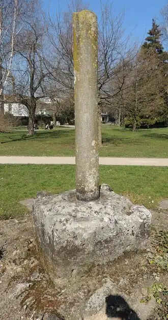 Il n'en subsiste que des vestiges : le fût d'une colonne posé sur un socle rectangulaire.