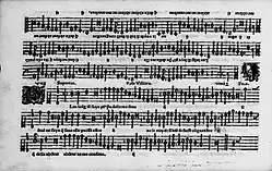 - ↑ La première partie du motet est transcrite dans Pogue 1969 p. 393-401.